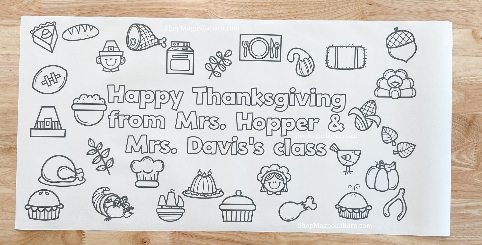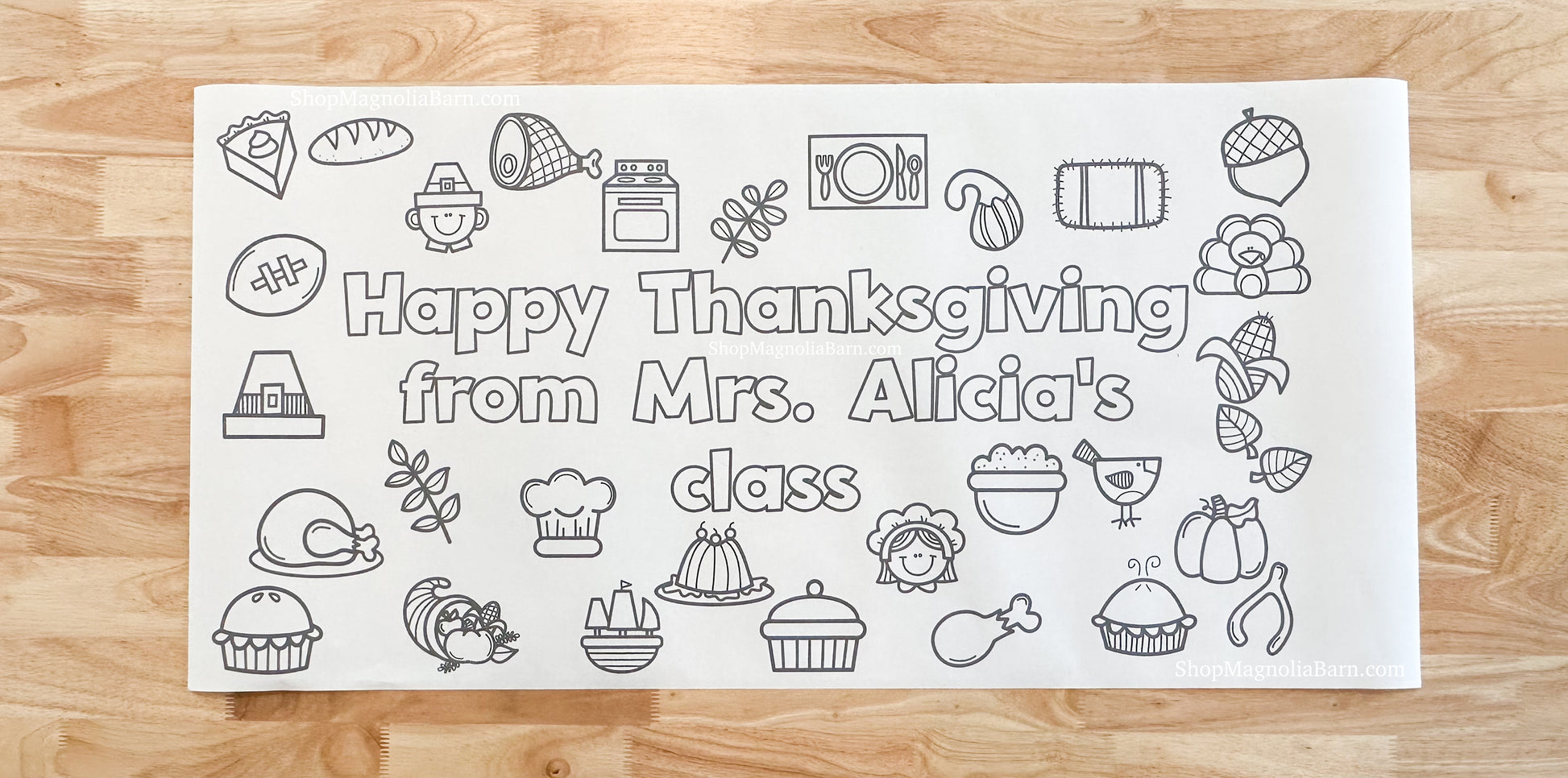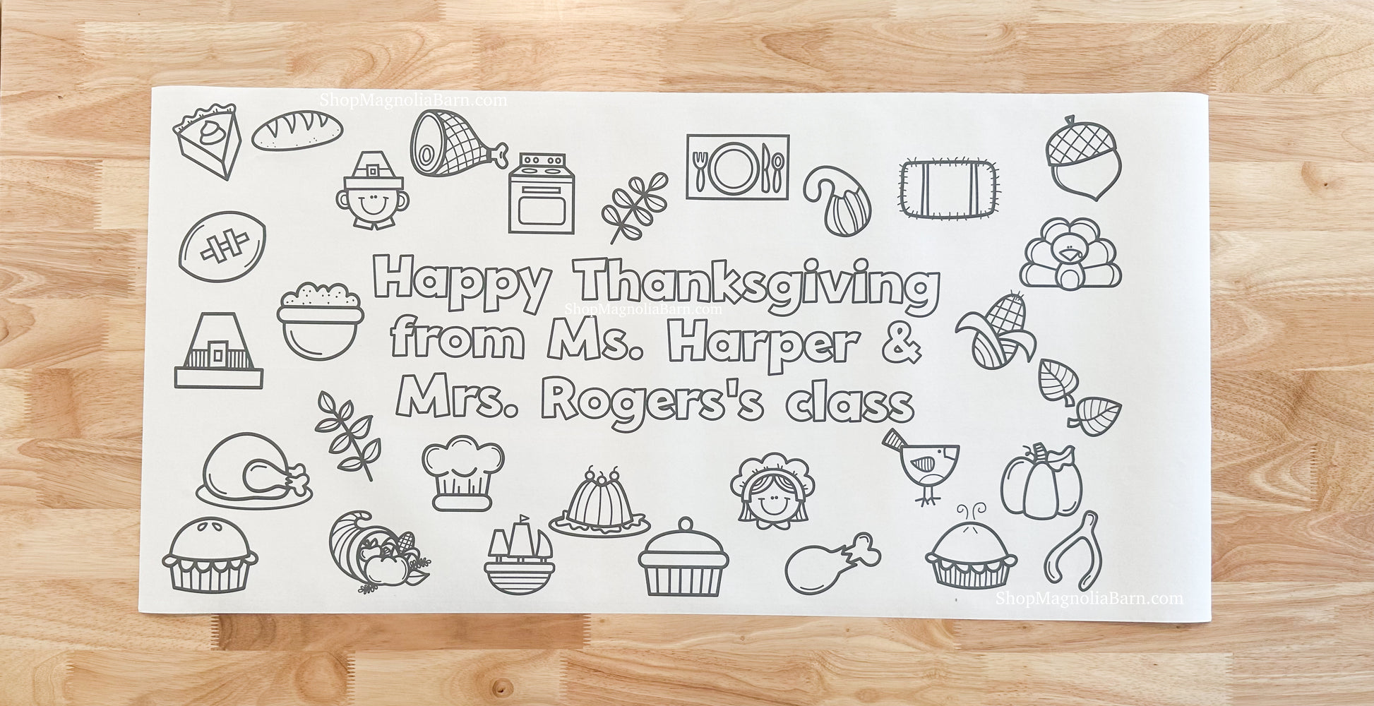 Bring joy and creativity to your Thanksgiving gathering with this large, interactive coloring banner, perfect for keeping kids entertained while parents enjoy catching up. Printed on sturdy 8 mil, 200 gsm heavyweight semi-gloss paper—similar to thick cardstock—this banner can handle enthusiastic coloring and will last as a cherished keepsake of your family's holiday celebration.