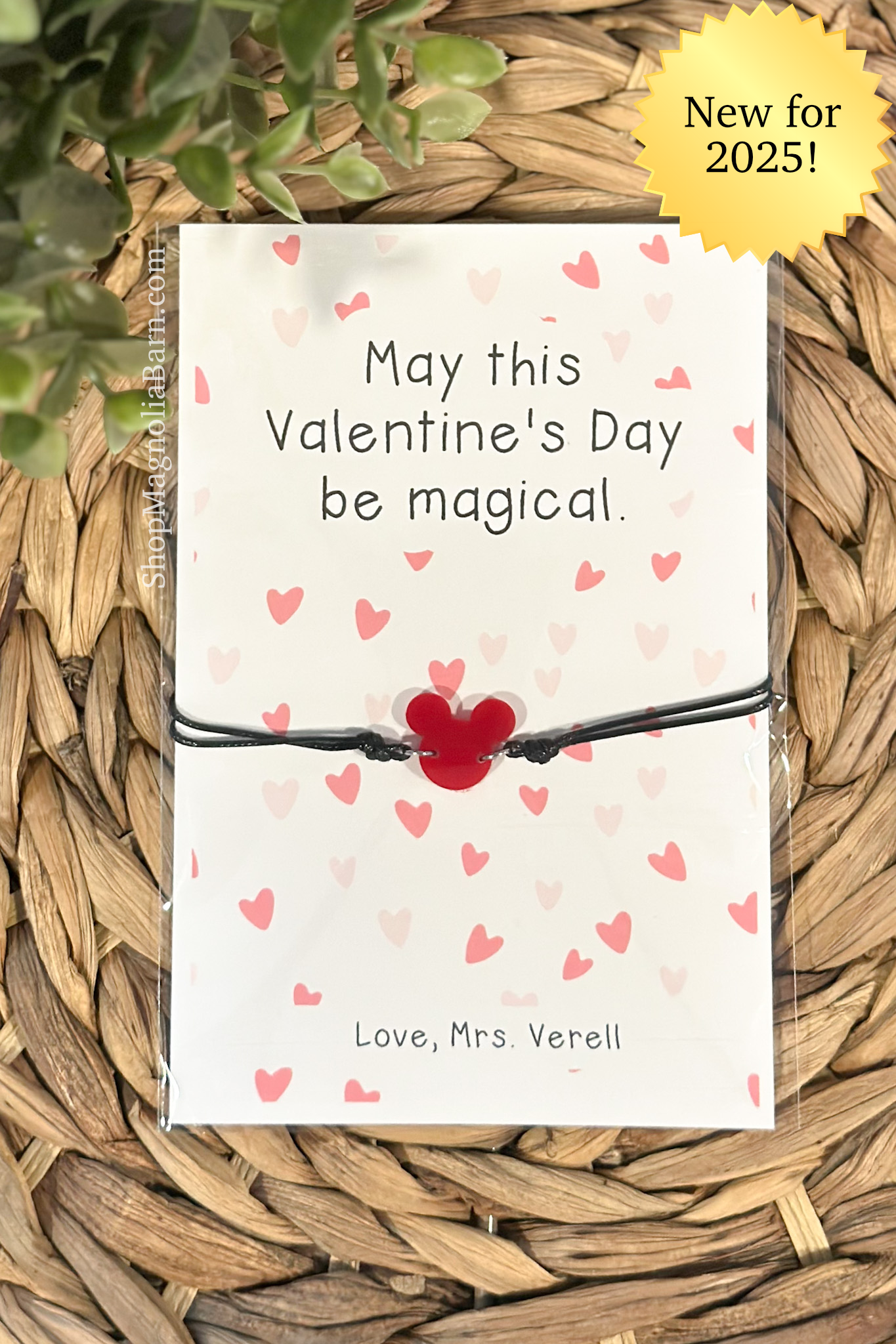 Bring a little magic to your students this Valentine’s Day with a heartfelt and enchanting gift! This thoughtful set features a charming bracelet with a magical mouse charm, paired with a beautifully designed card adorned with sweet heart accents. The card includes an uplifting message and is customizable with your name for a personal touch, making it extra meaningful for your students.