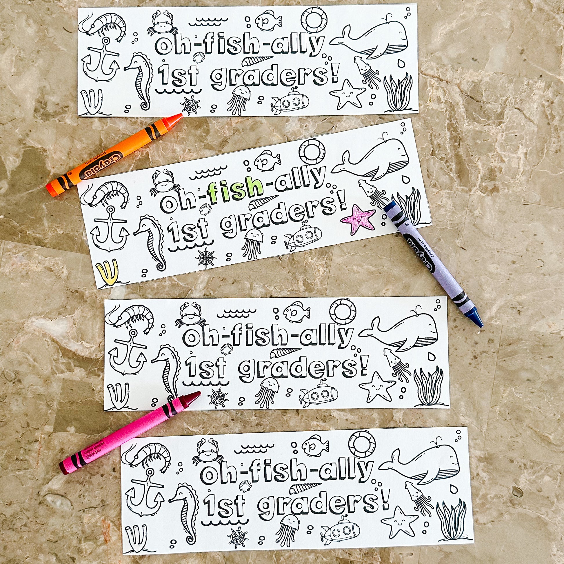 Oh-fish- ally Coloring Bookmarks Grades 1-6th- Digital Download