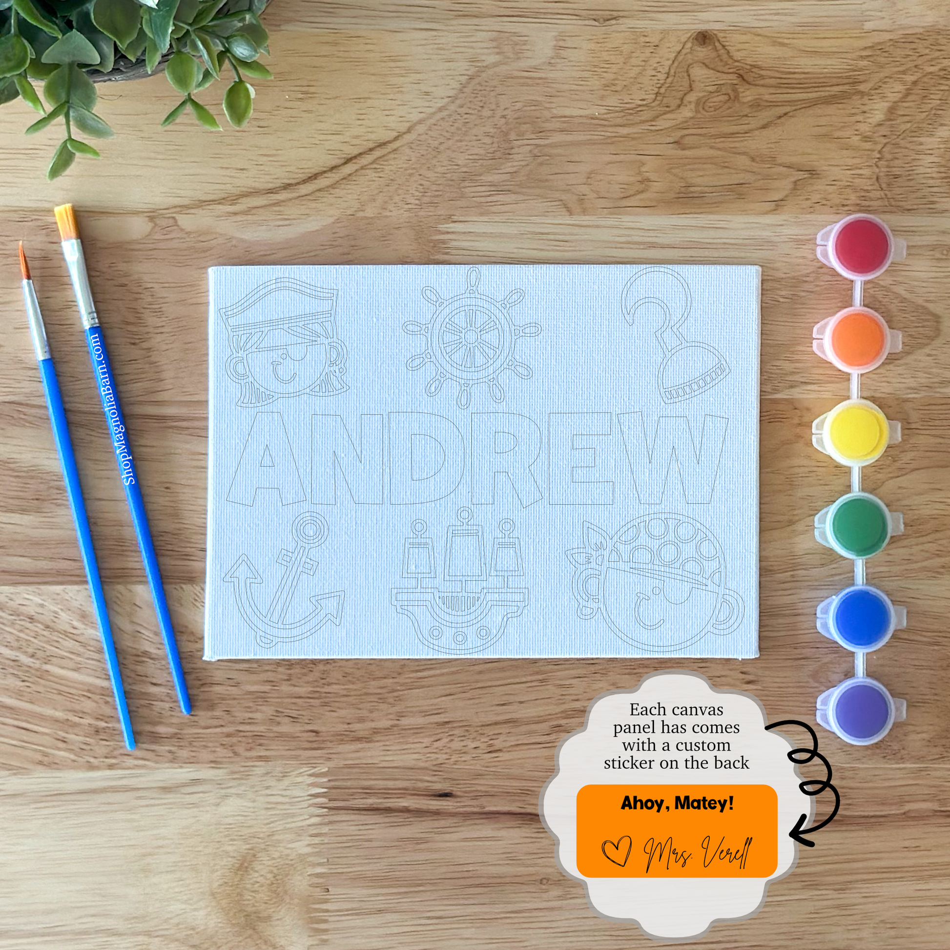 Parents, imagine the joy of hosting a paint party with these personalized canvas panels. Set up easels, brushes, and paints, and watch as your little buccaneers unleash their creativity, adding their own colorful touches to their pirate masterpieces. With each child's name engraved on their canvas panel, it becomes a cherished keepsake of the special day, a reminder of the fun and adventure shared with friends.