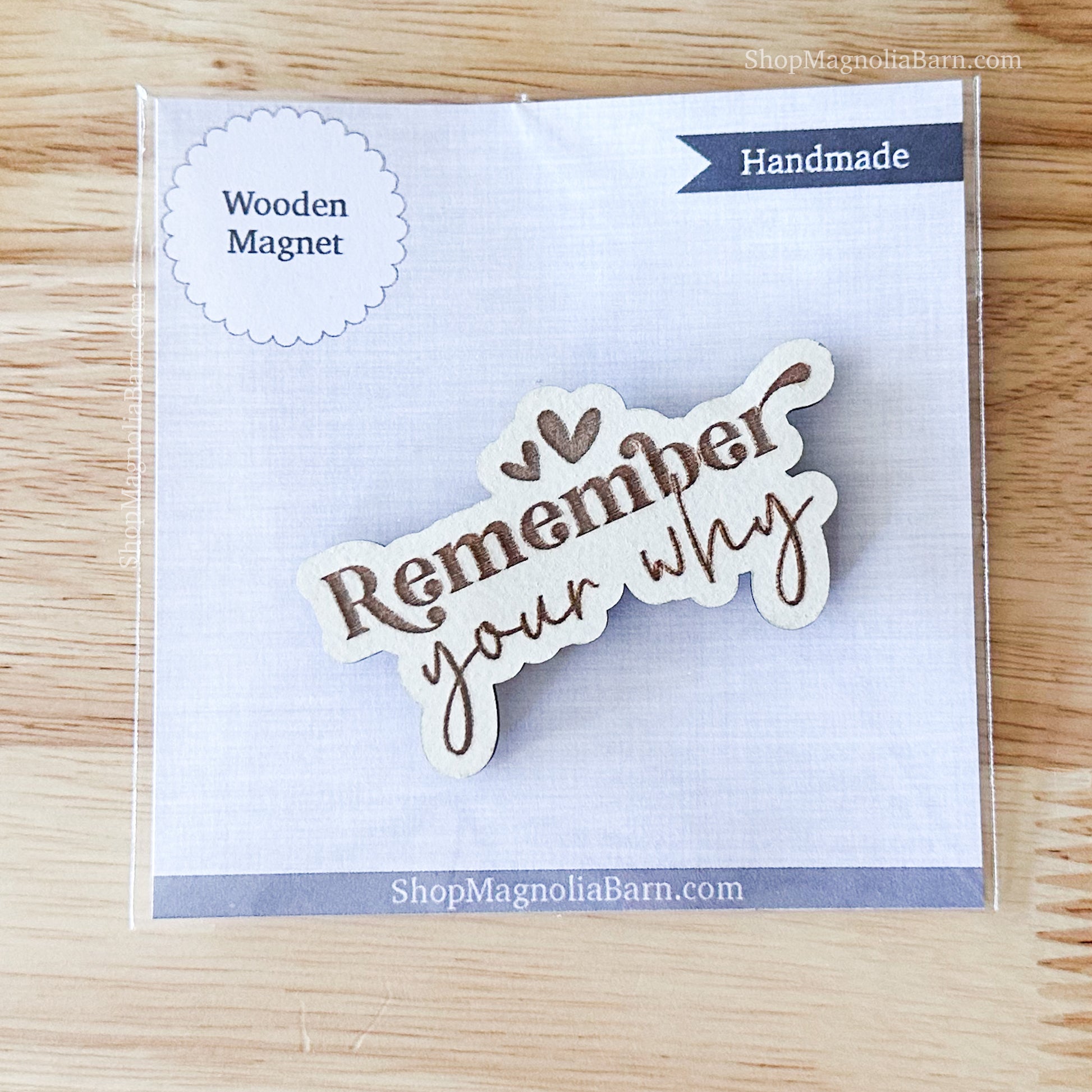Keep yourself inspired every day with our beautifully handcrafted wooden magnet, engraved with the empowering phrase "Remember Your Why." Perfect for your fridge, office, or any magnetic surface, this minimalist yet meaningful piece is designed to serve as a constant reminder of your purpose and motivation.