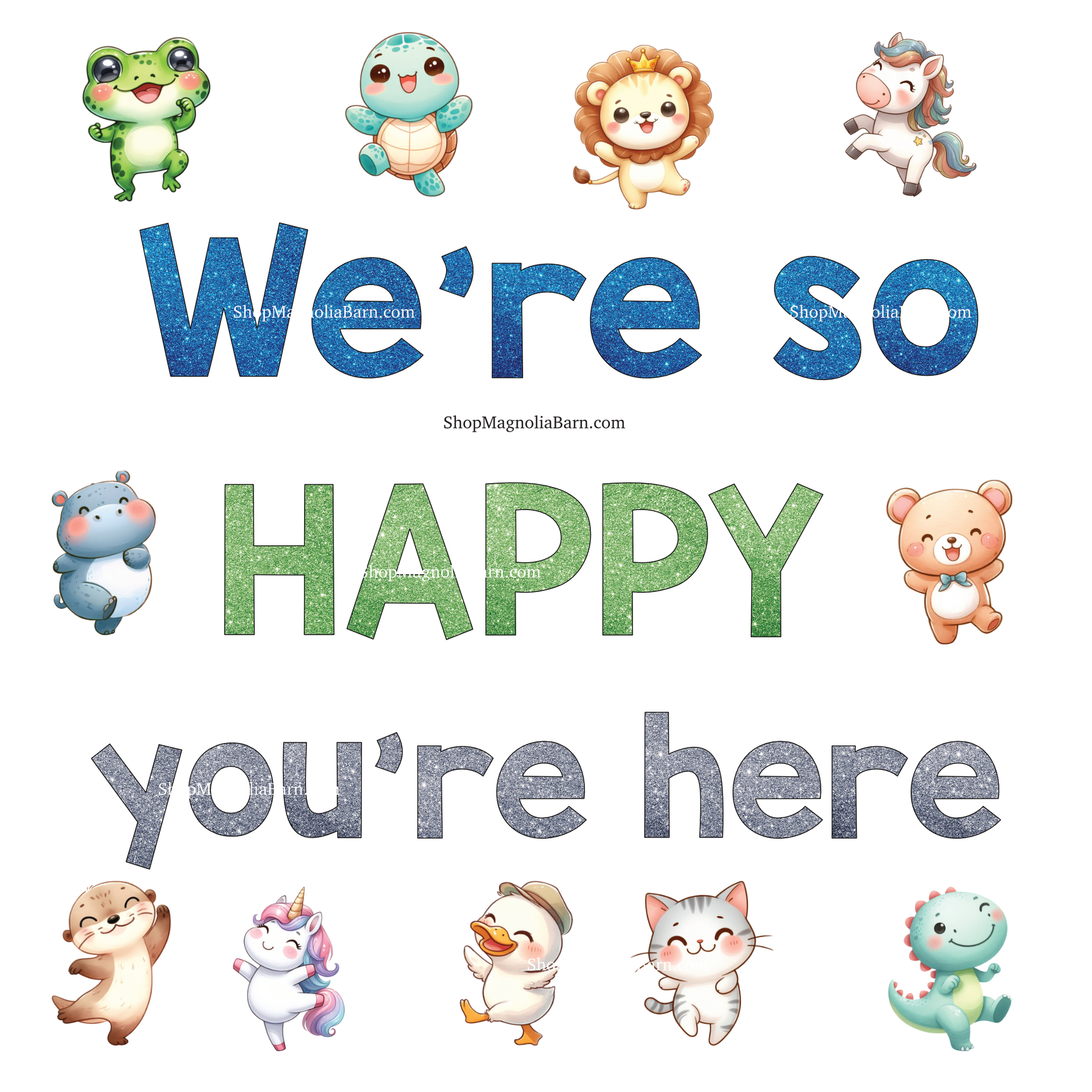 Transform your classroom into a joyful haven with our vibrant "We're So Happy You're Here!" bulletin board kit! This delightful digital download features faux glitter and charming, smiling animals that will brighten up any space and create a welcoming atmosphere for your students.